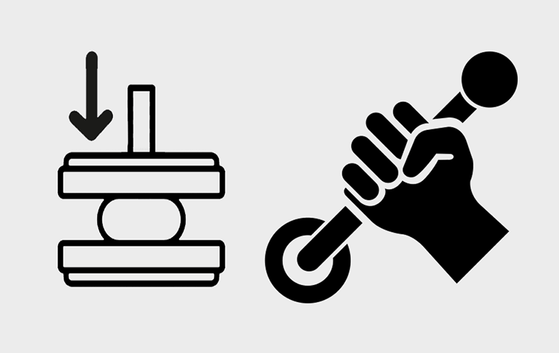 Le pressette manuali a ginocchiera sono pensate come macchine da banco, oppure come unità per l’integrazione su isole automatizzate. Si basano sul principio meccanico delle ginocchiera, in grado di moltiplicare di molte volte la forza impressa alla leva dall’operatore o dall’operatrice.