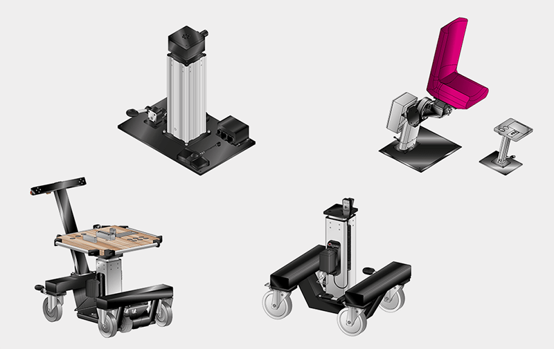 Sistemi modulari per la realizzazione di postazioni di assemblaggio ergonomiche. Grazie alla grande varietà di moduli disponibili è possibile realizzare numerose tipologie di postazioni, siano esse fisse o mobili. Esistono anche diversi sistemi di manipolazione dei pezzi, siano essi moduli di rotazione orizzontale o verticale, che permettono di disporre il componente da assemblare in modo pratico e funzionale. La modularità dei componenti permette inoltre ai Clienti di realizzare costruzioni pienamente personalizzate.