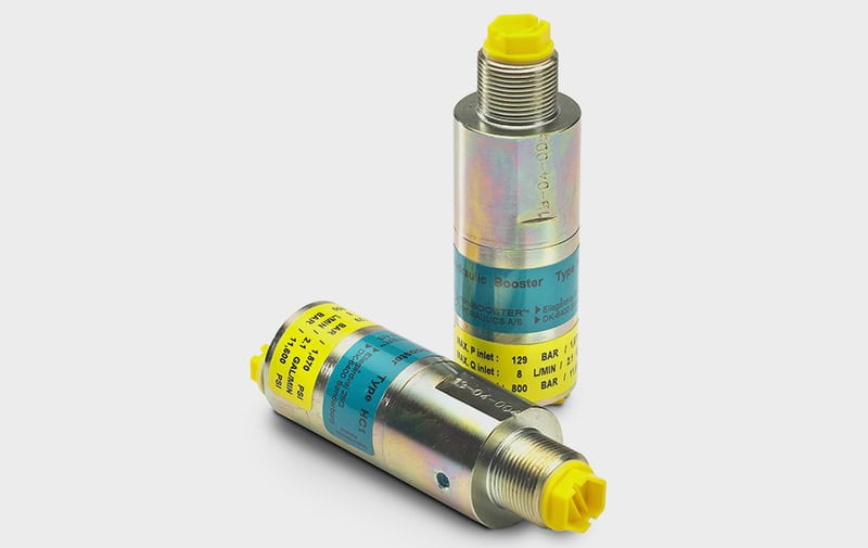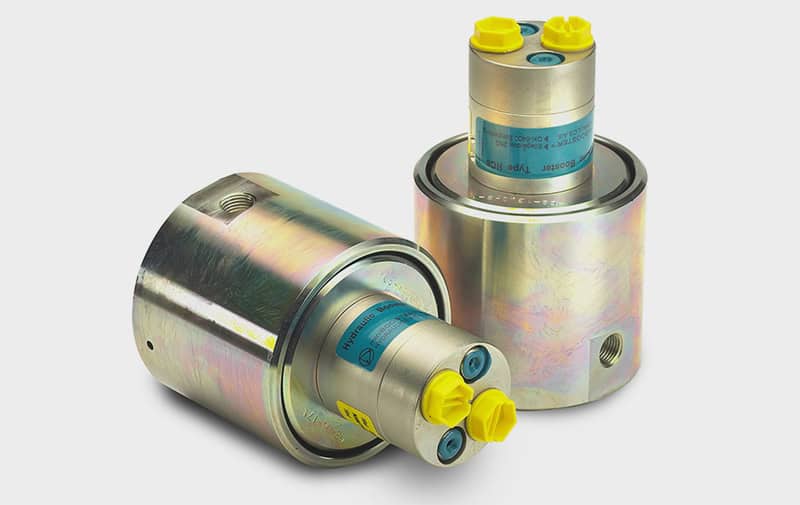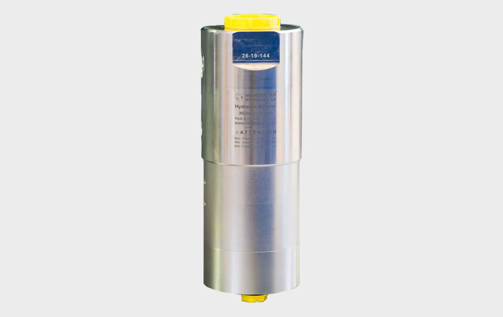 I moltiplicatori olio-olio o per un singolo fluido miniBOOSTER, consentono di gestire portate differenti grazie ai vari rapporti di moltiplicazione offerti. Tali moltiplicatori garantiscono prestazioni elevate e permettono di generare l'alta pressione solo in punti ben precisi del circuito idraulico. Il pratico montaggio tramite raccordi consente di effettuare la riconversione di un impianto idraulico preesistente in modo quasi istantaneo: è sufficiente "tagliare il vecchio tubo", interporre il moliplicatore ed inserire un raccordo di ritorno a serbatoio. Si possono raggiungere pressioni massime in uscita da 500 a 5.000 bar, con vari livelli di portata in ingresso e uscita in base alle dimensioni del moltiplicatore scelto.