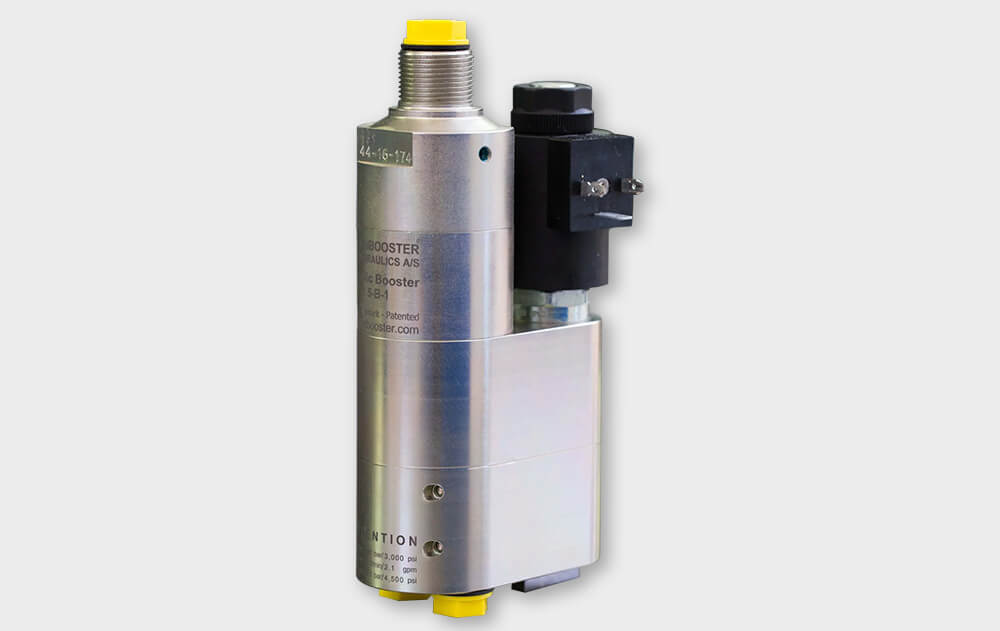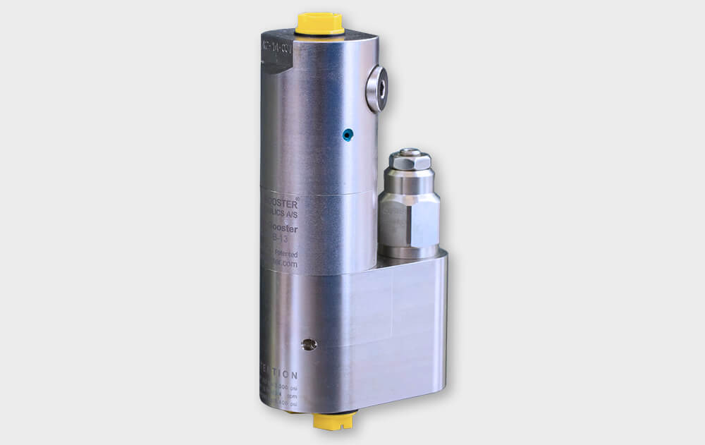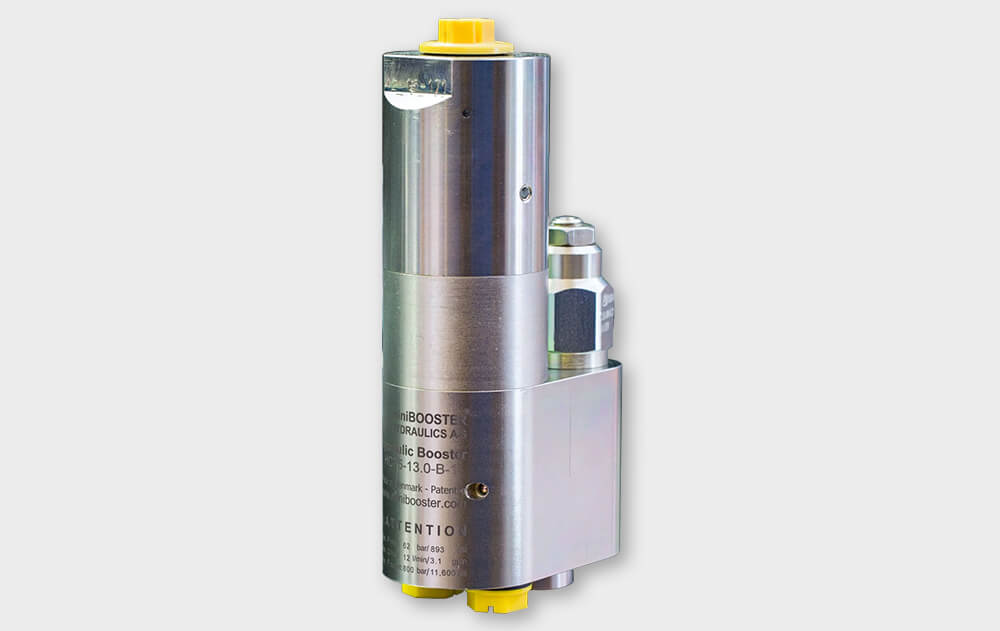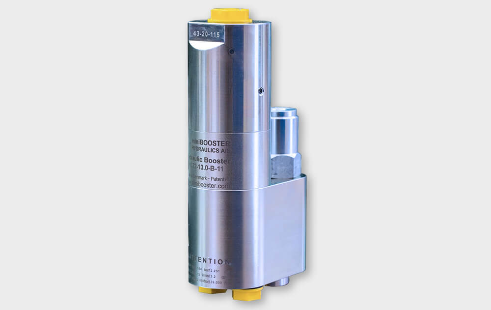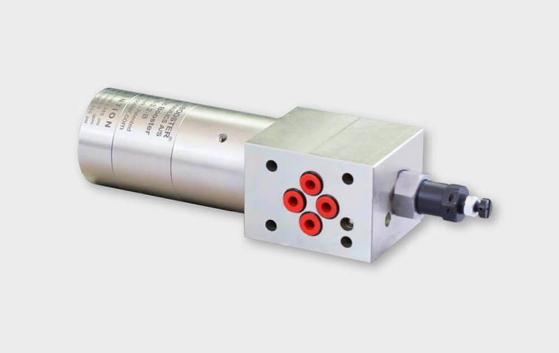 I moltiplicatori olio-olio per un singolo fluido (contattateci per scoprire i fluidi compatibili) miniBOOSTER, permettono di gestire portate differenti grazie ai vari rapporti di moltiplicazione offerti. Le nuove versioni con valvole di controllo integrate si presentano come veri e propri "mini-sistemi", grazie alle dimensioni molto compatte. Le valvole di controllo possono essere limitatrici, direzionali o valvole di controbilanciamento (utili a regolare il campo di intervento del moltiplicatore solo quando serve). Tali moltiplicatori garantiscono prestazioni elevate e permettono di generare l'alta pressione solo in punti ben precisi del circuito idraulico. Sono disponibili pressioni massime in uscita da 500 a 2.000 bar, con vari livelli di portata in ingresso e uscita in base alle dimensioni del moltiplicatore scelto, per realizzare ogni applicazione in modo compatto, efficiente ed economico.