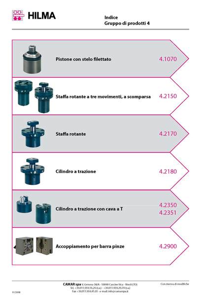 I bloccaggi idraulici integrati della Hilma sono studiati per integrarsi perfettamente con il piano tavola della pressa. L'opportuna lavorazione del piano tavola consente di ospitare le staffe rotanti, proposte anche nella variante a scomparsa. Esistono inoltre gli elementi di accoppiamento rapido per barre di presa, proposti in numerose varianti, utili nelle presse a trasferta.