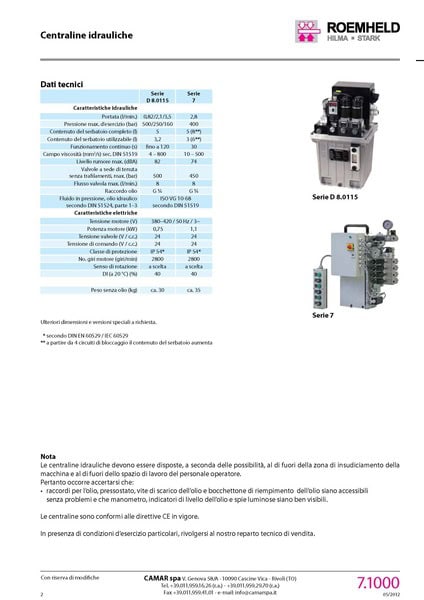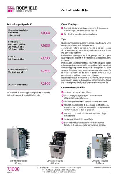 Per avere notizie più aggiornate, fare riferimento all'omologa sezione Roemheld per le centraline idrauliche.