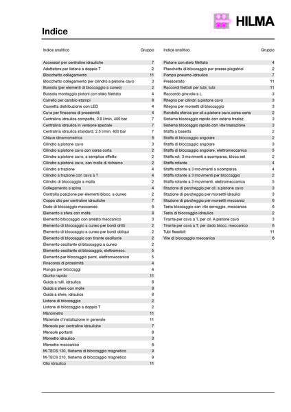 Riferimento per identificare con facilità il programma generale della Hilma QDC e l’indice dei principali prodotti.