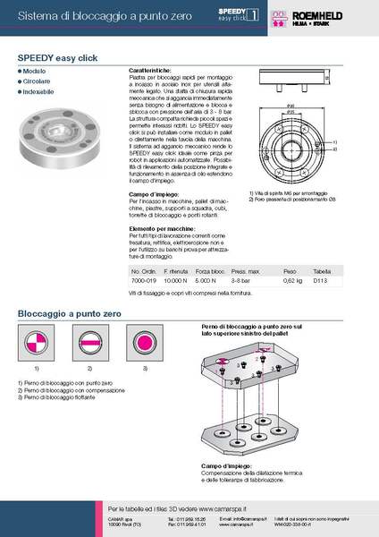 Il sistema a punto zero Stark Easy click è un dispositivo di bloccaggio rapido, che garantisce la massima tenuta senza dispendio di energia. Per lo sbloccaggio è necessaria una pressione dell'aria compressa da 3 a 8 bar. Il sistema Easy click può essere usato nella lavorazione su 5 assi con o senza asportazione di trucioli. Il sistema dispone di alcune caratteristiche interessanti: