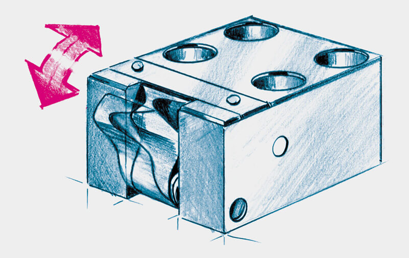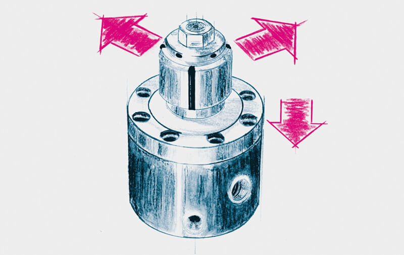 I cilindri idraulici sono disponibili in versione a semplice o doppio effetto, così come con movimenti compositi, nel caso di staffe rotanti e staffe a leva. Roemheld è anche leader mondiale nella produzione di irrigiditori antivibranti, capaci di supportare efficacemente parti labili dei pezzi da lavorare.