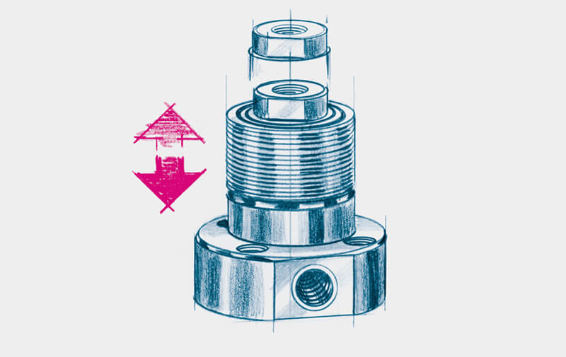 I cilindri idraulici Roemheld, già affermatisi in decine di migliaia di esemplari nel campo dei bloccaggi idraulici e delle attrezzature idrauliche automatiche o semiautomatiche, sono in grado di svolgere molteplici funzioni anche nella costruzione di macchine, attrezzature e nella produzione di forme di fonderia. Grazie alla sua secolare esperienza, Roemheld è in grado di fornire cilindri idraulici estremamente robusti e affidabili, capaci di sostenere i ritmi produttivi più serrati. Ogni cilindro di bloccaggio idraulico è pensato per rispondere alle esigenze più disparate, con la possibilità di esecuzioni speciali su indicazione dei Clienti.