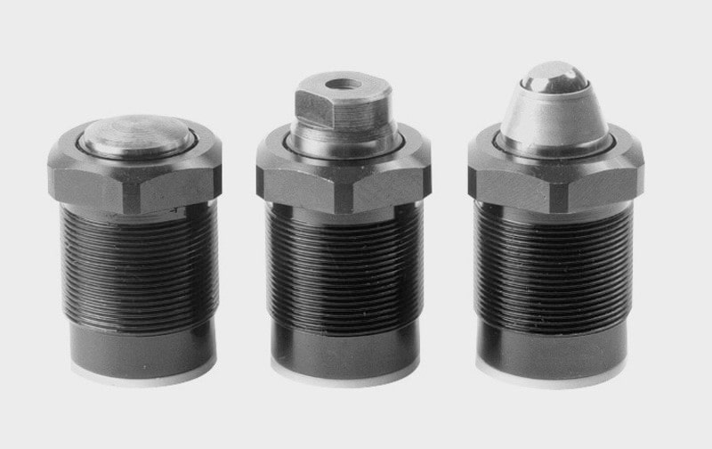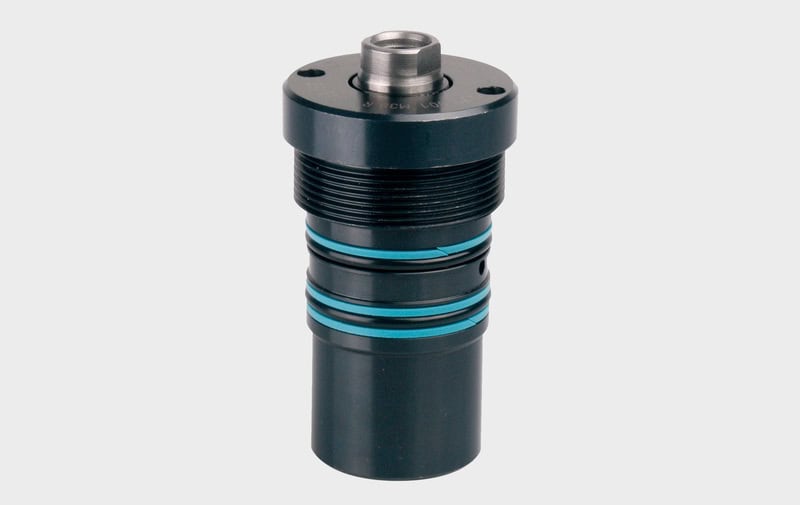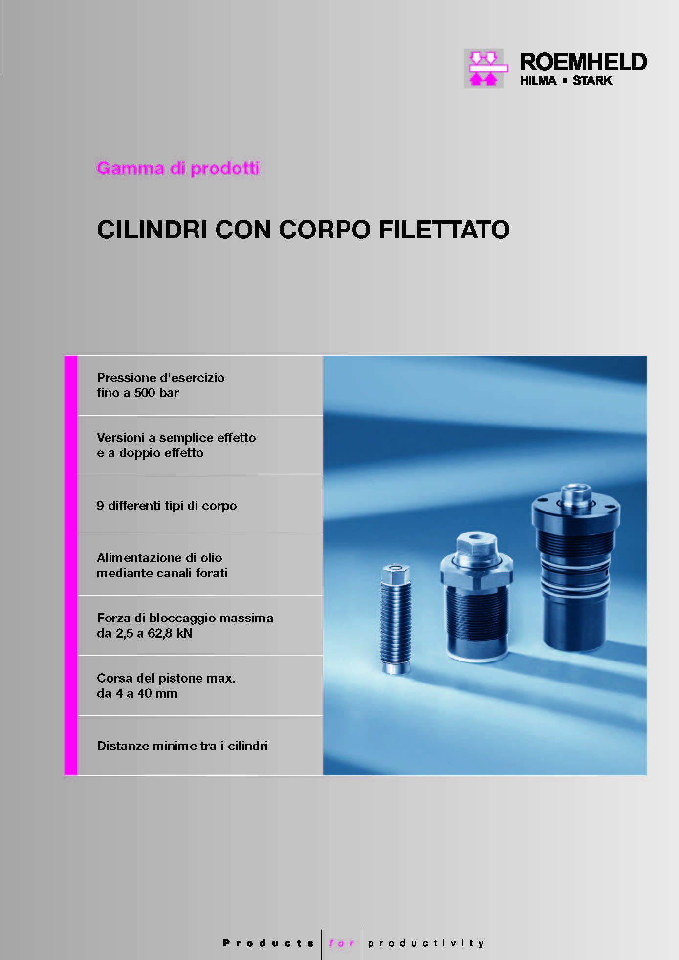 I cilindri idraulici con attacco filettato (cilindri filettati) vengono avvitati direttamente nel corpo dell’attrezzatura di bloccaggio. La costruzione compatta del pistone consente la realizzazione di attrezzature idrauliche di minimo ingombro, ma con elevata densità di forza, grazie all’alta pressione (fino a 500 bar).