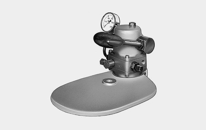 ● la pompa idraulica ad azionamento manuale è una pompa idraulica manuale con esecuzione con pedale, zoccolo e manometro. Con questa pompa manuale, in combinazione con gli elmenti idraulici di bloccaccio Roemheld, è possibile realizzare fissaggi economici dei pezzi;