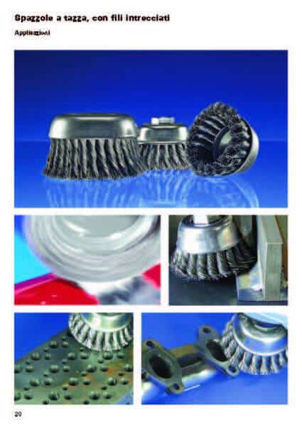 Le spazzole a tazza OSBORN sono spazzole industriali adatte a ogni tipo di smerigliatrice ad angolo: permettono di rimuovere scorie, vernice, ruggine, scaglie di ossidazione e sporcizia di ogni genere creando sui metalli superfici perfette per la verniciatura o per altri rivestimenti. La rotazione senza squilibri di questa tipologia di spazzole a tazza permette un loro impiego agevole. Esistono numerose tipologie di filo (metallico o sintetico), per rispondere alle esigenze più disparate.