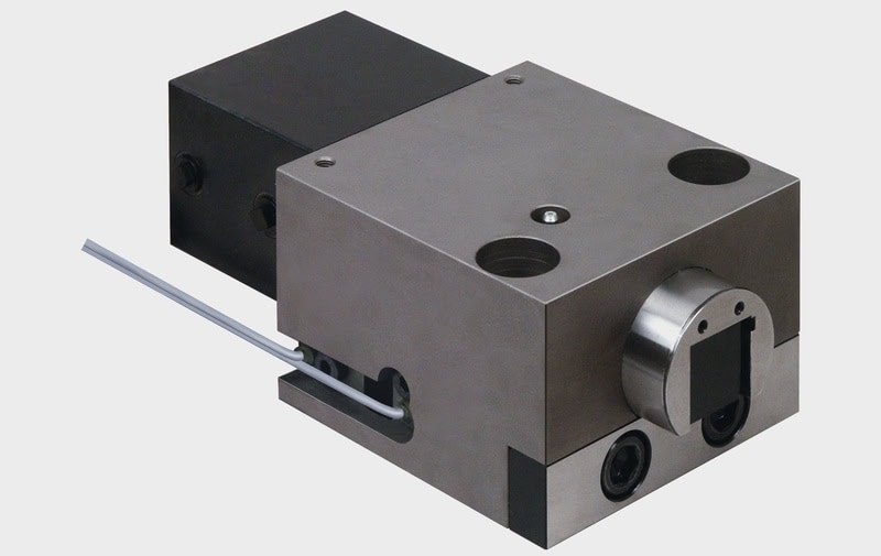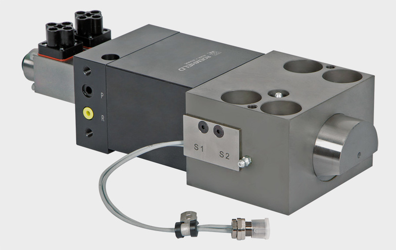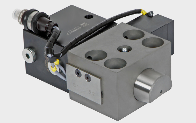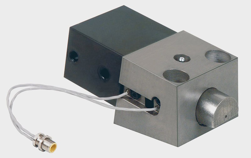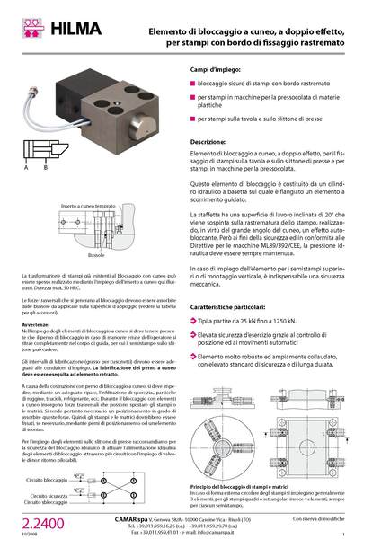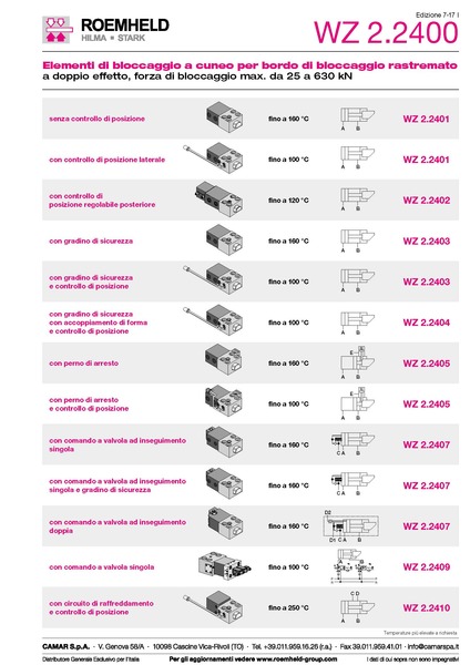 Elemento di bloccaggio ad arco per bordo di bloccaggio diritto HILMA ROEMHELD WZ22503 a doppio effetto, forza massima di bloccaggio da 30 fino a 630 kN, con dispositivo di blocco meccanico, con o senza controllo di posizione laterale.
