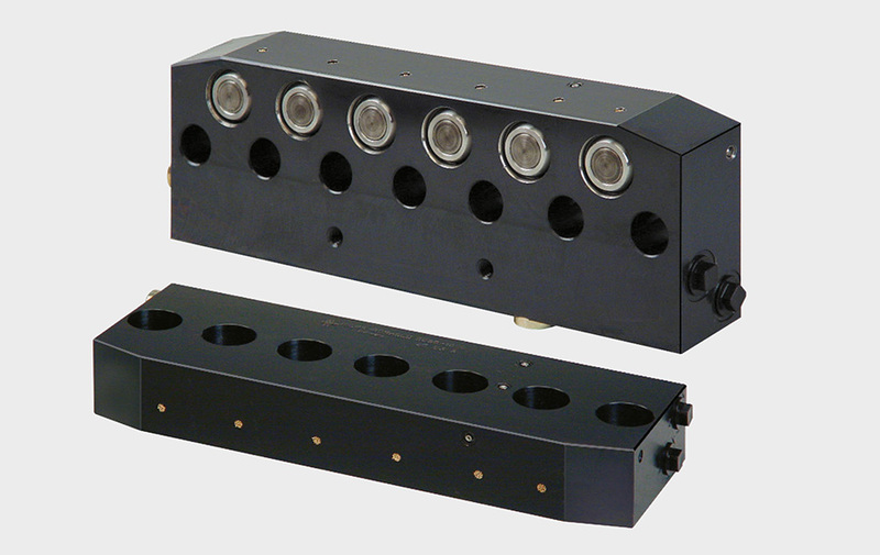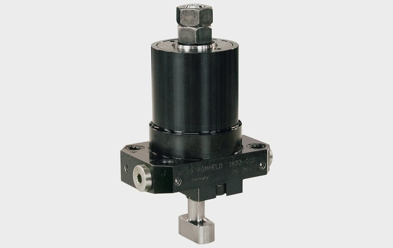 Cilindro a pistone cavo a semplice effetto HILMA ROEMHELD WZ21320, con ritorno a molla, pressione massima di esercizio 400 bar.