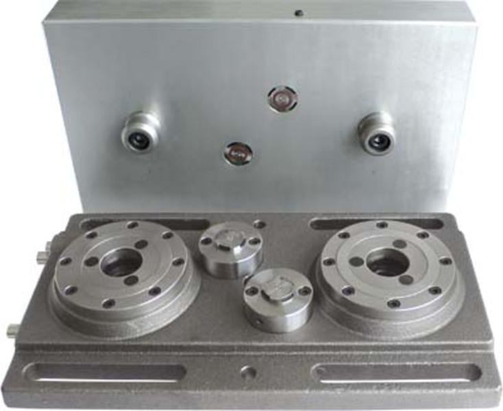 La piastra per set 2 può essere inserita mediante asole e cursori con spina praticamente su qualsiasi tavola della macchina. I fori di accoppiamento favoriscono un allineamento semplice.